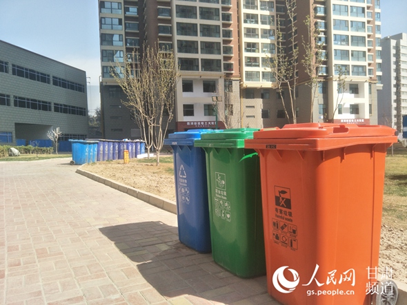 蘭州市某小區(qū)設(shè)立的分類垃圾桶 (高翔 攝)
