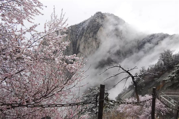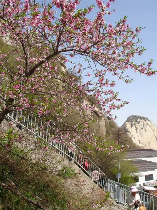四月的春天,伴隨著微微涼意,華山山間的桃花開得格外鮮艷,四月的清風(fēng)輕輕吹,空氣中彌漫著淡淡的花香。最美不過人間四月天,天空是湛藍(lán)的,草地是翠綠的,大地是溫暖的,花兒是五顏六色的。呼吸著清晨新鮮的空氣,美好的一天從登上華山開始。