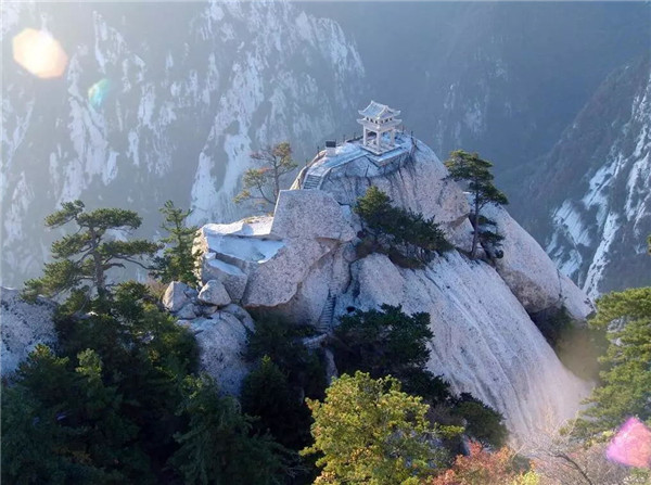 華山古稱“西岳”,是我國著名的五岳之一,南接秦嶺,北瞰黃渭,扼守著大西北進(jìn)出中原的門戶。華山由一塊完整碩大的花崗巖體構(gòu)成,有東、西、南、北、中五峰,主峰有南峰“落雁”、東峰“朝陽”、西峰“蓮花”,三峰鼎峙。最高峰也是五岳最高峰—南峰“落雁”海拔2154.9米。