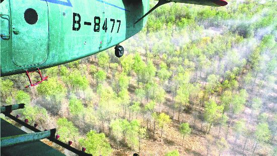 4月14日,一架農(nóng)用飛機(jī)在第一師10團(tuán)防風(fēng)林帶上空噴灑殺蟲(chóng)劑。自4月上旬以來(lái),兵團(tuán)對(duì)葉爾羌河、塔里木河流域的第一師、第二師和第三師的35萬(wàn)畝野生胡楊林和人工林實(shí)施飛防,有效控制食葉害蟲(chóng)對(duì)野生胡楊林和人工林的危害。王志清 攝