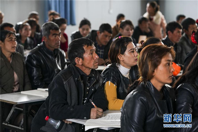 依明在新疆于田縣達(dá)里雅布依鄉(xiāng)牧民課堂里學(xué)習(xí)(3月15日攝)。新華社記者 胡虎虎 攝