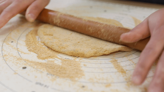 16.糯米面搟的時候一定要有耐心,大概搟成0.5厘米厚度的面片。