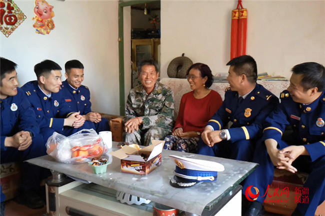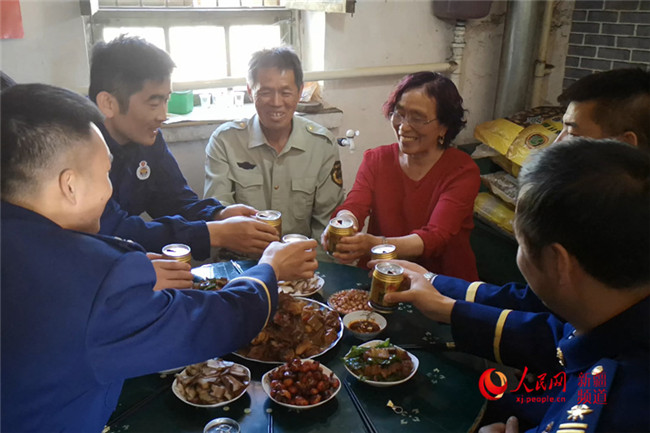 “媽媽,我們祝您母親節(jié)快樂!”在胡阿利的家里,六名森林消防員圍著蛋糕為胡媽媽送上了祝福。