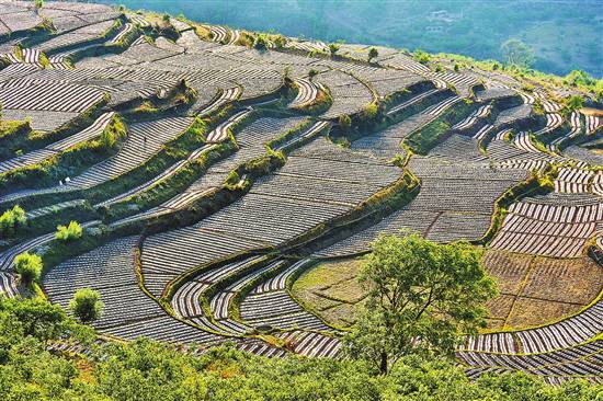 近日,南澗彝族自治縣南澗鎮(zhèn)白云村的烤煙大田移栽基本完成,一片片梯田構成了一幅美麗的畫卷。南澗縣今年將進一步加大科技種植、科技管理力度,力爭實現(xiàn)烤煙生產(chǎn)提質增效。本報通訊員 適志宏 攝