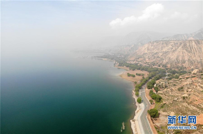 這是在永靖縣境內拍攝的黃河三峽景色(5月20日無人機拍攝)。 坐落于甘肅省永靖縣境內的黃河三峽,由炳靈峽、劉家峽、鹽鍋峽組成,屬黃河上游。黃河三峽兩岸人文景觀豐富,自然風光秀美。 新華社記者 范培珅 攝
