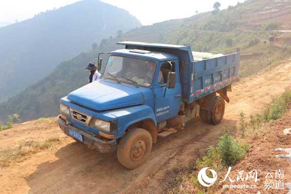 路同村委會(huì)送水的卡車(chē)
