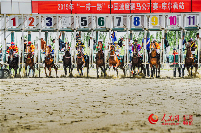 近日,2019年“一帶一路”中國(guó)速度賽馬公開賽·新疆庫(kù)爾勒站(第二屆全國(guó)青年運(yùn)動(dòng)會(huì)速度賽馬預(yù)賽·新疆站)比賽在新疆庫(kù)爾勒市體育公園正式拉開帷幕,來(lái)自疆內(nèi)外的1.8萬(wàn)余名游客現(xiàn)場(chǎng)感受了馬背上的“速度與激情”。(趙環(huán) 彭守群)
