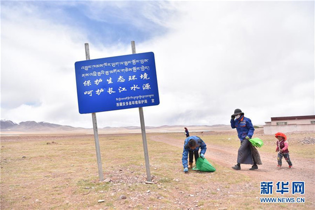為保護(hù)長江源生態(tài)環(huán)境,西藏安多縣瑪曲鄉(xiāng)每周都會在全鄉(xiāng)范圍內(nèi)組織“保護(hù)長江源”撿拾垃圾活動,由各村黨員志愿者帶頭,生態(tài)巡護(hù)員參與,群眾自愿參加。這項環(huán)保活動于2016年發(fā)起,如今已堅持3年。