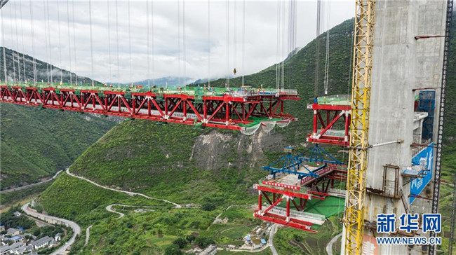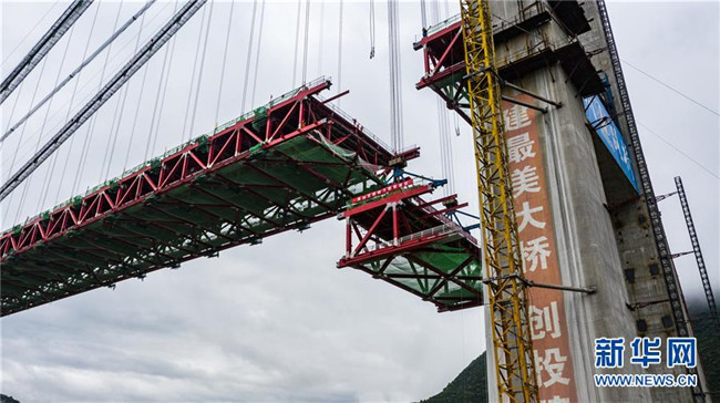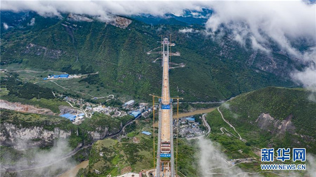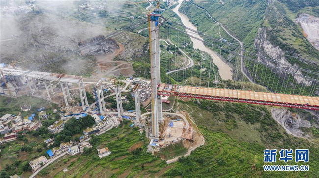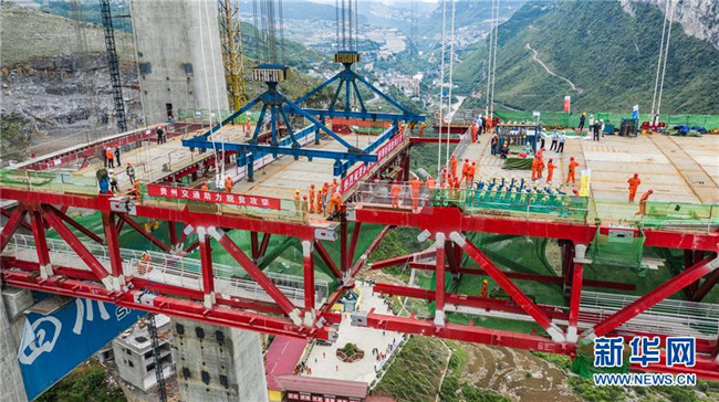 合龍中的江習(xí)古高速公路赤水河大橋(5月30日無(wú)人機(jī)拍攝)。 新華社記者 陶亮 攝