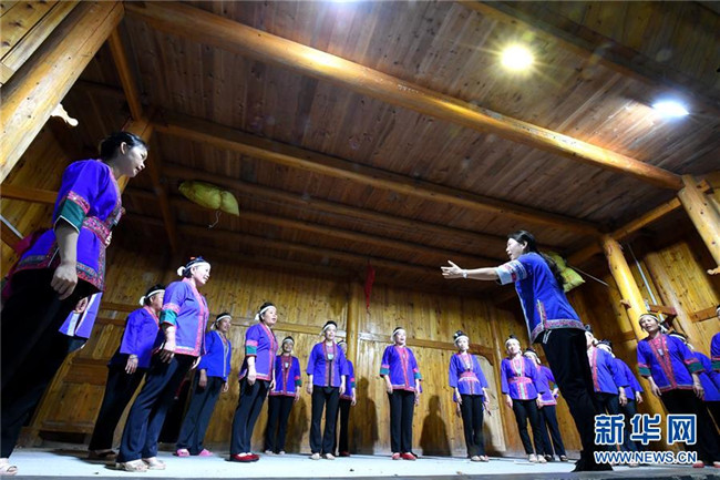 5月27日晚,在廣西柳州市三江侗族自治縣良口鄉(xiāng)燕茶村,吳純娟與村民在戲臺(tái)上排練侗族大歌。 今年42歲的吳純娟是廣西柳州市三江侗族自治縣文化館的一名文藝輔導(dǎo)員。她從小喜歡唱歌,工作后接觸并喜歡上侗族大歌,2005年起專(zhuān)門(mén)拜師學(xué)唱侗族大歌。如今,侗族大歌成為她主要輔導(dǎo)和傳承的音樂(lè)之一。今年3月中旬,她成為三江縣良口鄉(xiāng)燕茶村一名駐村工作隊(duì)員,侗族大歌是她扶貧的法寶。 燕茶村位于侗鄉(xiāng)大山深處的山腰上,村民們雖然熱愛(ài)歌舞,但卻無(wú)人會(huì)唱侗族大歌。吳純娟進(jìn)村后,當(dāng)即在村里開(kāi)設(shè)了侗族大歌免費(fèi)培訓(xùn)班,利用晚上及其他工作之余的時(shí)間教村民唱侗族大歌,受到村民歡迎。如今,燕茶村專(zhuān)門(mén)成立“侗族大歌文藝隊(duì)”,隊(duì)員從一開(kāi)始的20人迅速發(fā)展到33人。村部會(huì)議室、村里的戲臺(tái)、還有山上的千畝茶園……他們的歌聲幾乎傳遍了燕茶村的每個(gè)角落。 “這段時(shí)間,吳老師還利用休息時(shí)間教學(xué)校老師和學(xué)生唱侗族大歌。”燕茶村燕子小學(xué)老師楊雪連說(shuō),學(xué)校里從來(lái)沒(méi)有音樂(lè)老師,吳老師在學(xué)校里開(kāi)班,師生們學(xué)習(xí)熱情也非常高。 吳純娟說(shuō):“每首侗族大歌歌唱的都是自然、勞動(dòng)和愛(ài)情之美,傳承民族文化的同時(shí),我更希望激發(fā)貧困山區(qū)群眾對(duì)美好生活的向往,提高自信,共同脫貧致富。”據(jù)了解,侗族大歌是侗族地區(qū)一種多聲部、無(wú)指揮、無(wú)伴奏、自然和聲的原生態(tài)音樂(lè)。2005年,侗族大歌被列入我國(guó)第一批非物質(zhì)文化遺產(chǎn)名錄,2009年被列入世界人類(lèi)非物質(zhì)文化遺產(chǎn)代表作名錄。