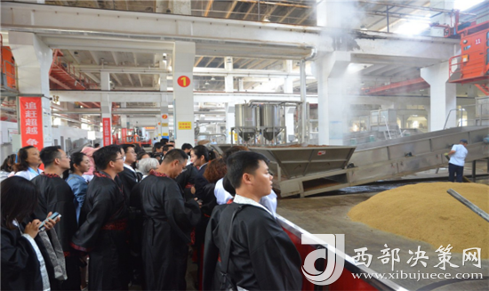 熱心觀眾和消費(fèi)者及相關(guān)媒體參觀西鳳酒制酒生產(chǎn)工藝流程