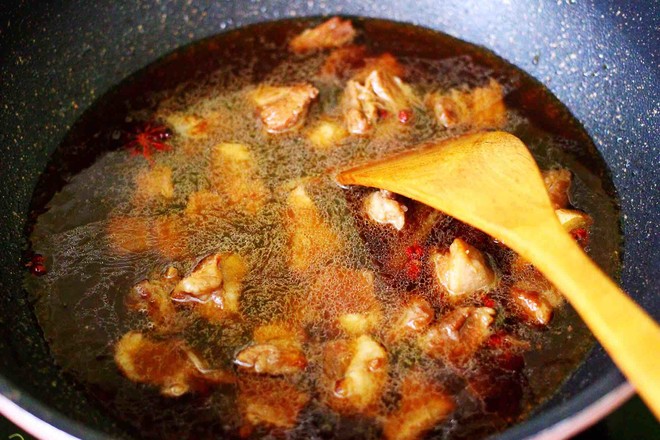 15.蓋上鍋蓋,小火燉煮至鍋中湯汁濃稠的時(shí)候。