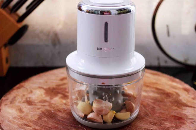 5.大蒜放入東菱無(wú)線絞肉機(jī)里,去皮后取出備用。