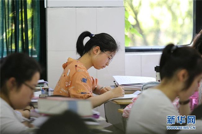 6月4日,在浙江省衢州二中,高三學(xué)生在教室復(fù)習(xí)備考。 新華社發(fā)(劉惠震攝)