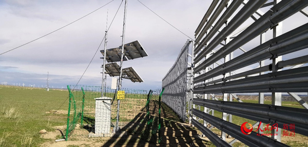 克塔鐵路線上設置的風吹雪監(jiān)控設備。中國鐵路設計集團有限公司克塔鐵路項目部供圖