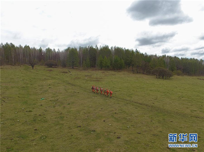 奇乾中隊(duì)消防隊(duì)員進(jìn)行晨練(5月15日無(wú)人機(jī)拍攝)。新華社記者 劉磊 攝