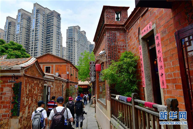 游客在修繕一新的福建省福州上下杭傳統(tǒng)街區(qū)游玩(2019年6月8日攝)。 新華社記者 姜克紅 攝