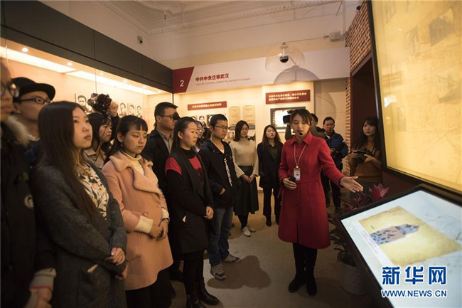 武漢大學(xué)的學(xué)生參觀武漢中共中央機(jī)關(guān)舊址紀(jì)念館(2017年3月26日攝)。新華社記者 熊琦 攝