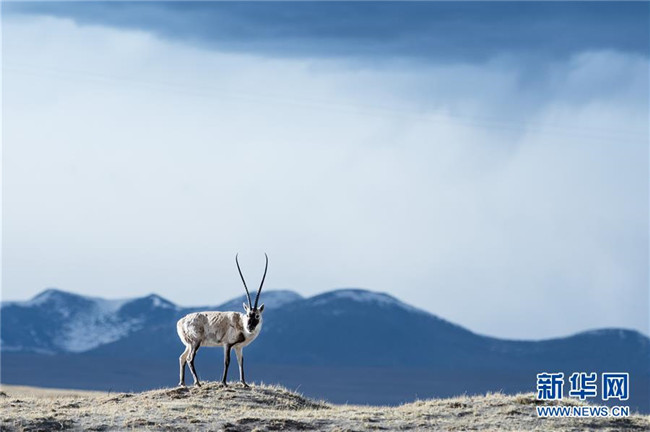 一只藏羚羊在青海可可西里地區(qū)覓食(2015年5月19日攝)。新華社記者 吳剛 攝
