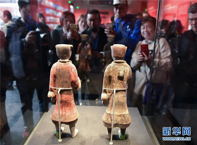 觀眾在中國國家博物館舉行的“歸來——意大利返還中國流失文物展”上欣賞文物。展覽展出了700余件意大利返還中國的文物藝術(shù)品(2019年4月24日攝)。新華社記者 李賀 攝