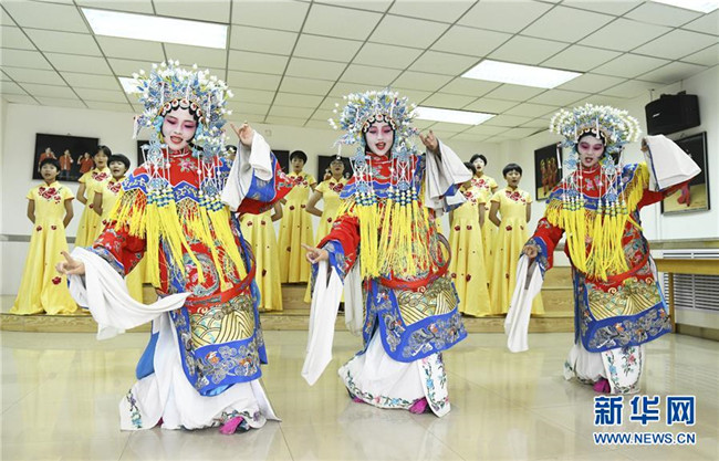 在河北省石家莊市第四十四中學(xué),學(xué)生在為定期舉辦的河北梆子合唱節(jié)排練(2019年5月16日攝)。新華社發(fā)(陳其保 攝)