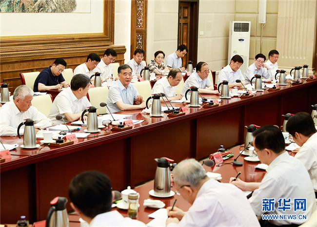 6月10日,中共中央政治局常委、全國政協(xié)主席汪洋在北京與有關(guān)民主黨派中央、全國工商聯(lián)負(fù)責(zé)人和無黨派人士代表座談,就相關(guān)黨派團體開展的“創(chuàng)新驅(qū)動引領(lǐng)高質(zhì)量發(fā)展”調(diào)研成果進行協(xié)商。 新華社記者 黃敬文 攝
