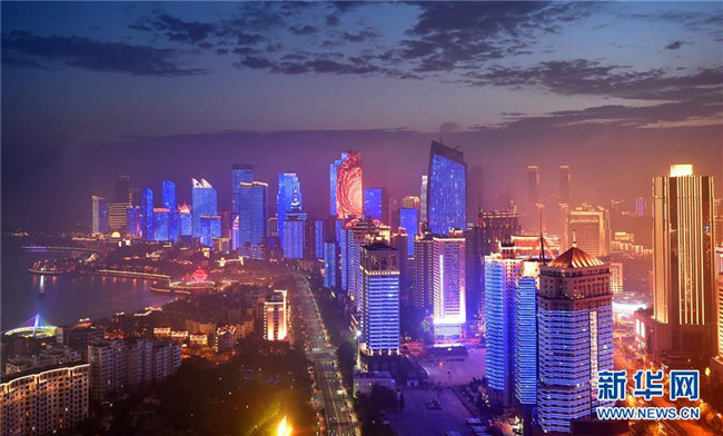 青島浮山灣夜景(2018年6月攝)。新華社記者 李紫恒 攝