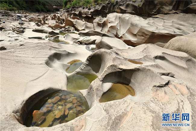 這是6月16日拍攝的四川省會東縣鲹魚河鐵柳鎮(zhèn)火石村段的壺穴地貌。