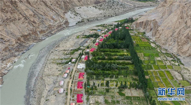 這是在新疆塔什庫爾干塔吉克自治縣大同鄉(xiāng)克其克同村拍攝的一處易地扶貧搬遷安置點(6月18日無人機拍攝)。新華社記者胡虎虎攝