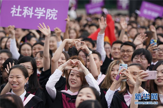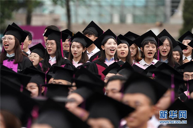 當(dāng)日,清華大學(xué)舉行2019年本科生畢業(yè)典禮和學(xué)位授予儀式,3000余名本科畢業(yè)生身著學(xué)位服參加典禮。 新華社記者鞠煥宗攝