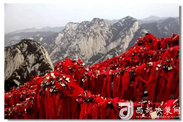 華山是一座愛情的殿堂,華山上的愛情故事悲烈、凄美而感人。我們?cè)?jīng)為世界上許許多多的愛情故事所感動(dòng)。其實(shí),發(fā)生在華山上的愛情故事一樣讓人的心情無法平靜。眾所周知的神話傳說《寶蓮燈》中,三圣母為了愛情,被二郎神巨石壓在華山頂上;弄玉為了愛情,逃離安逸的生活,與蕭史雙雙來到華山,琴瑟合鳴;漢臣王咸不畏艱險(xiǎn),到華山尋找賢妻南陽公主,等等。這些愛情故事,感天動(dòng)地,流傳不衰,不知讓多少人為之贊嘆。也許是讓華山上的這些動(dòng)人的愛情故事所感染,不知從什么時(shí)候開始,在代表著堅(jiān)實(shí)聯(lián)結(jié)的一串串鐵鏈上,游人掛上了金光閃閃的鎖子,把矢志不渝的愛情鎖在華山上,祝愿自己的愛情如同華山一樣永遠(yuǎn)不會(huì)改變。華山,有許許多多這樣與愛情有關(guān)的物事。華山,不愧是一座愛情的殿堂。