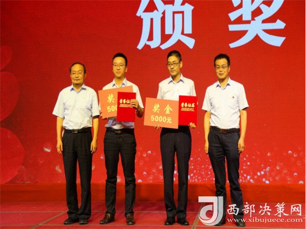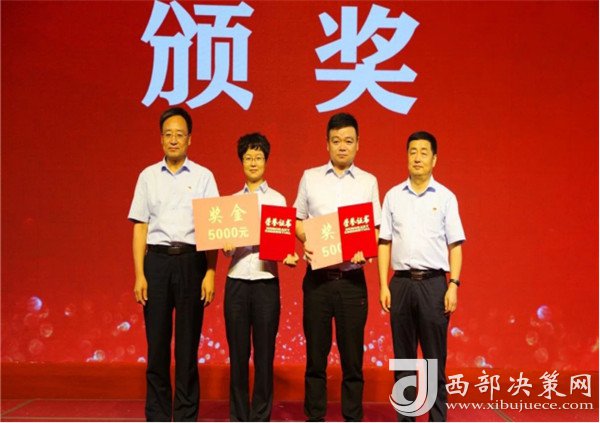 西鳳股份公司副總經(jīng)理、董事會(huì)秘書張周虎,西鳳集團(tuán)公司工會(huì)主席陳軍紅為受表彰的先進(jìn)個(gè)人頒獎(jiǎng)