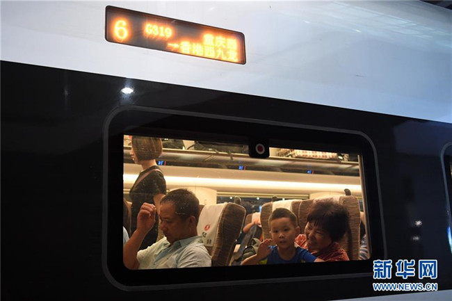 7月11日,一位小朋友在G319次列車上向窗外揮手。當(dāng)日,重慶至香港直達(dá)高鐵正式開通,此次首發(fā)的G319次復(fù)興號(hào)列車運(yùn)行速度350km/h,沿途經(jīng)停遵義、貴陽東、桂林西、肇慶東、廣州南和深圳北站。列車由重慶西站至香港西九龍站全程運(yùn)行需7小時(shí)37分鐘,全程票二等座票價(jià)為660元。目前內(nèi)地與香港聯(lián)通的高鐵車站已增加到58個(gè)。新華社記者唐奕攝
