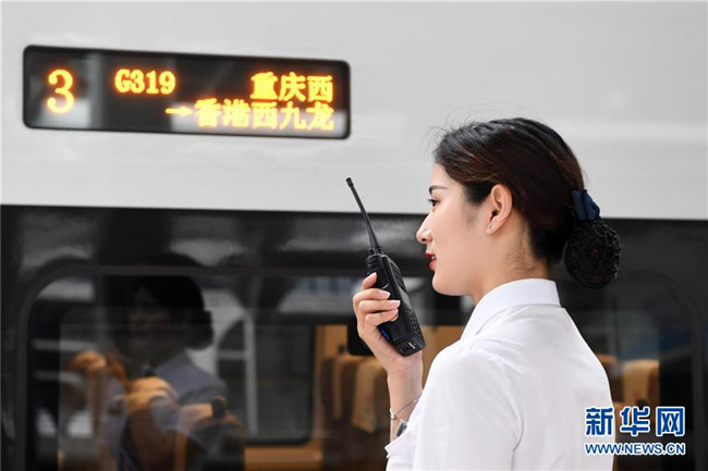 7月11日,乘務(wù)員在G319次列車上做發(fā)車前的準(zhǔn)備工作。當(dāng)日,重慶至香港直達(dá)高鐵正式開通,此次首發(fā)的G319次復(fù)興號(hào)列車運(yùn)行速度350km/h,沿途經(jīng)停遵義、貴陽東、桂林西、肇慶東、廣州南和深圳北站。列車由重慶西站至香港西九龍站全程運(yùn)行需7小時(shí)37分鐘,全程票二等座票價(jià)為660元。目前內(nèi)地與香港聯(lián)通的高鐵車站已增加到58個(gè)。新華社記者唐奕攝
