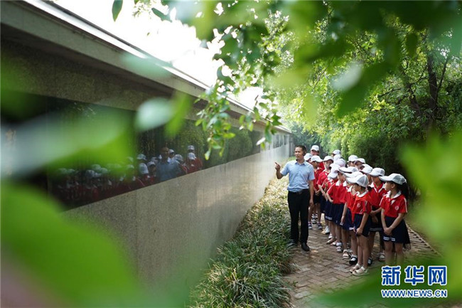 當日,河北省邢臺市巨鹿縣育新小學組織學生前往位于該縣縣城的邢臺市愛國主義教育基地——愛華翰苑碑林,聽講解員講解碑上鐫刻的熱愛祖國、熱愛家鄉(xiāng)等歷代名言警句,過一個有意義的暑假。 新華社記者 牟宇 攝