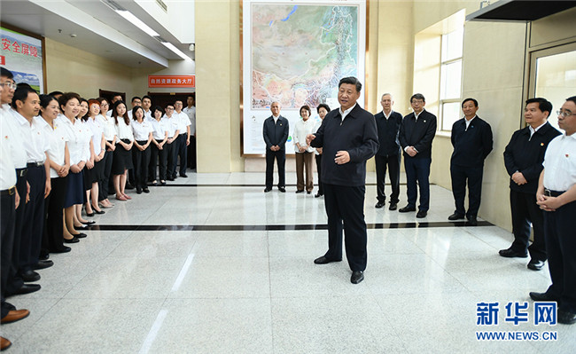 7月15日至16日,中共中央總書記、國家主席、中央軍委主席習(xí)近平在內(nèi)蒙古考察并指導(dǎo)開展“不忘初心、牢記使命”主題教育。這是16日,習(xí)近平在內(nèi)蒙古自治區(qū)自然資源廳調(diào)研指導(dǎo)開展“不忘初心、牢記使命”主題教育。 新華社記者 謝環(huán)馳 攝