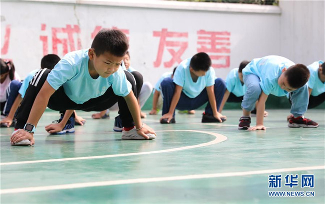 “小候鳥”們在武術(shù)課前做熱身運(yùn)動(7月15日攝)。