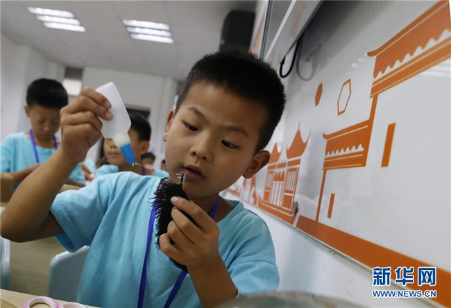 位于上海嘉定區(qū)南翔鎮(zhèn)的南翔工業(yè)開發(fā)區(qū),有許多來自外地的工人。暑假期間,許多小朋友從老家趕來開發(fā)區(qū)跟爸爸媽媽團(tuán)聚。這些“小候鳥”的爸爸媽媽白天要上班,無暇照顧孩子,上海南翔工業(yè)開發(fā)區(qū)實(shí)業(yè)有限公司職工親子工作室從7月初到8月下旬,在工作日為“小候鳥”們安排了豐富多彩的活動,包括做手工、學(xué)畫畫、練武術(shù)等,讓“小候鳥”們度過一個文武雙全的暑假生活。 新華社記者 方喆 攝
