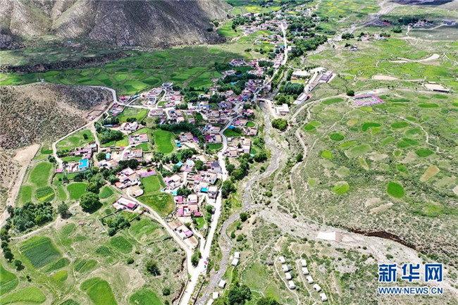 鳥(niǎo)瞰達(dá)東村景區(qū)(7月20日無(wú)人機(jī)拍攝)。西藏拉薩市柳梧鄉(xiāng)達(dá)東村是一個(gè)千年古村,也曾是一個(gè)貧困村。近年來(lái),依托秀美的自然風(fēng)光、深厚的歷史文化和淳樸的風(fēng)土人情,當(dāng)?shù)卣畬?shí)施文化旅游產(chǎn)業(yè)精準(zhǔn)扶貧,使達(dá)東村蛻變成為鄉(xiāng)村旅游勝地。新華社記者普布扎西攝