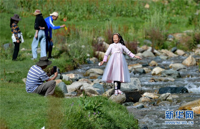 孩子們?cè)谶_(dá)東村景區(qū)溫泉里嬉戲(7月20日攝)。西藏拉薩市柳梧鄉(xiāng)達(dá)東村是一個(gè)千年古村,也曾是一個(gè)貧困村。近年來(lái),依托秀美的自然風(fēng)光、深厚的歷史文化和淳樸的風(fēng)土人情,當(dāng)?shù)卣畬?shí)施文化旅游產(chǎn)業(yè)精準(zhǔn)扶貧,使達(dá)東村蛻變成為鄉(xiāng)村旅游勝地。新華社記者張汝鋒攝