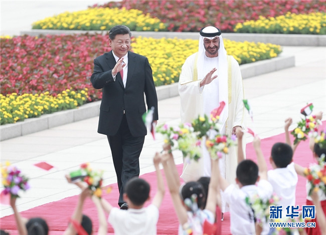 習(xí)近平說,去年7月,我對阿聯(lián)酋成功進行國事訪問,我們共同宣布中阿建立全面戰(zhàn)略伙伴關(guān)系,開啟中阿攜手共進的嶄新篇章。一年來,雙方積極落實訪問成果,兩國關(guān)系保持全方位、高質(zhì)量發(fā)展。