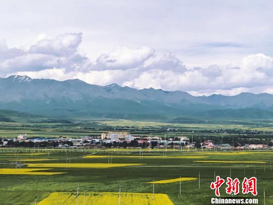 甘肅祁連山“雪頂”與萬畝油菜花交相輝映