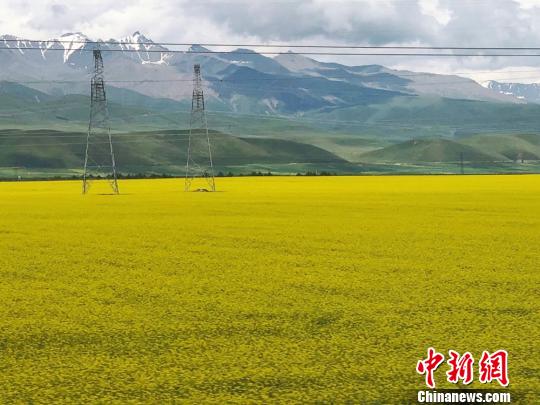 七月盛夏,甘肅祁連山雪頂銀裝素裹,山下萬畝油菜花競相開放,如一片望不到邊的金色海洋,二者交相輝映,美如畫卷。