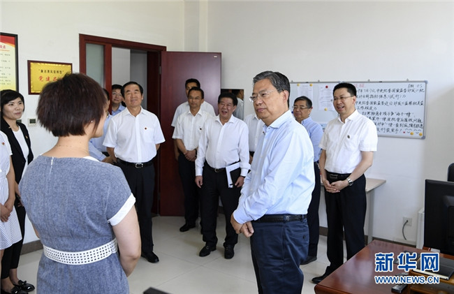 7月22日至24日,中共中央政治局常委、中央紀(jì)委書記趙樂(lè)際到寧夏調(diào)研。這是7月22日,趙樂(lè)際在石嘴山市紀(jì)委監(jiān)委機(jī)關(guān)實(shí)地了解紀(jì)檢監(jiān)察工作和主題教育開展情況。 新華社記者 張領(lǐng) 攝