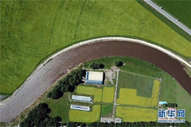 7月29日在碌曲縣拍攝的洮河河畔的油菜花田(無人機(jī)拍攝)。新華社記者 馬寧 攝