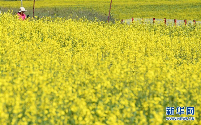 7月29日,當(dāng)?shù)鼐用裨诼登h的一處油菜花田拍照賞景。 新華社記者 馬寧 攝