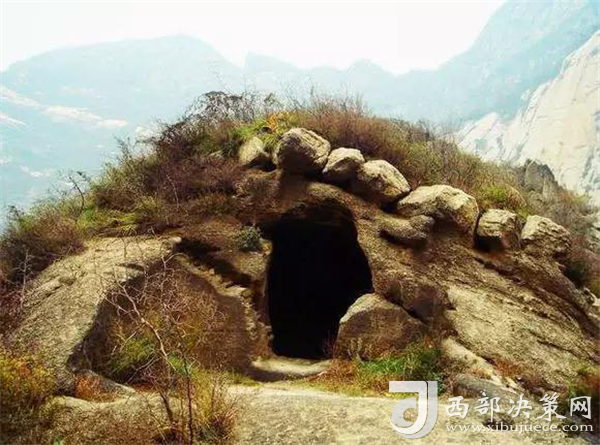 在華山北峰,過千尺幢經(jīng)百尺峽,就到了北峰最著名的老君犁溝。這里最為吸引人的,除卻“犁險(xiǎn)于幢,幢險(xiǎn)而犁突”的殊勝景觀,除卻老君犁溝盡頭陡峭到連山猴都難以逾越的“猢猻愁”,光是崖壁下一口幽深的石洞,就足以讓四海游人紛至沓來。足蹬石窩手?jǐn)堣F索攀上石頂,再走過一個(gè)獨(dú)木橋就到了山洞口。