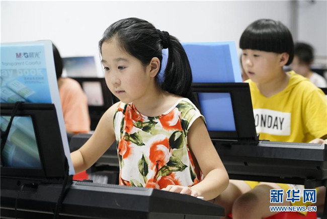 7月30日,學(xué)生在河北省涉縣青少年活動(dòng)中心學(xué)習(xí)電子琴。
