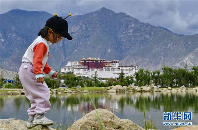 在南山公園湖畔拍攝的布達(dá)拉宮風(fēng)光(7月30日攝)。新華社記者 張汝鋒 攝