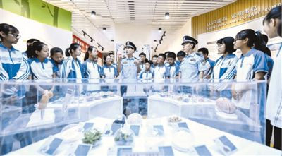 近日,在山東省棗莊市臺兒莊古城中學的禁毒教育基地,民警向學生介紹新型毒品的種類、特征和危害,提升他們識毒、防毒、拒毒的意識和能力。新華社記者 高啟民攝